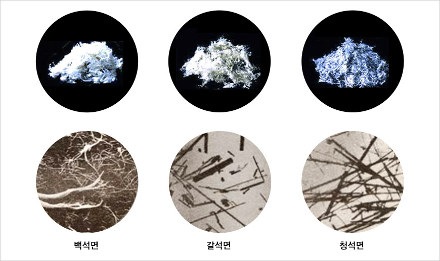 석면은 천연의 자연계에 존재하는 사문석 및 각섬석 등의 광물에서 채취된 섬유모양의 규산화합물로, 직경이 1㎛인 유연성과 특이한 광택이 있는 섬유상의 광물이다.