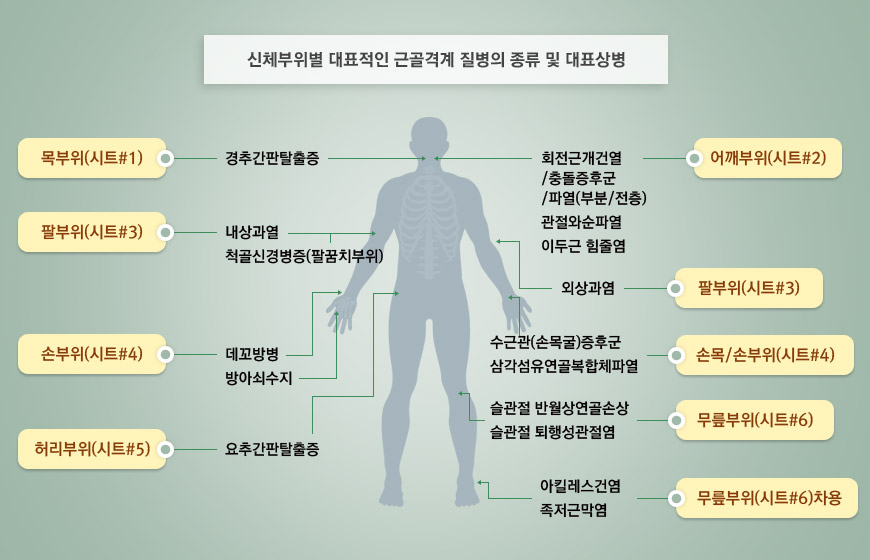 산업현장에서 신체 일부분의 과도한 사용이나, 무거운 물건을 드는 동작 등으로 인하여 발생하는 근골격계 질환은 전체 업무상 질병 중 가장 큰 비중을 차지하며, 산업현장에서 가장 흔하게 볼 수 있는 질환군으로 주로 육체노동자에게 발병하는 질병입니다.