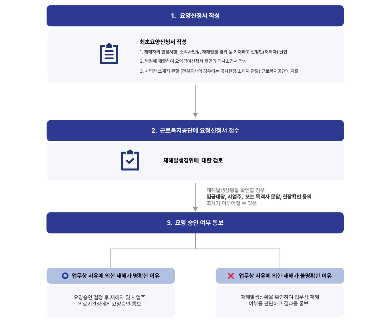업무상의 사유로 부상을 당하거나 질병에 걸려 4일 이상 요양이 필요한 경우에는 요양신청서를 제출하여 업무상 재해로 승인을 받아야 합니다.