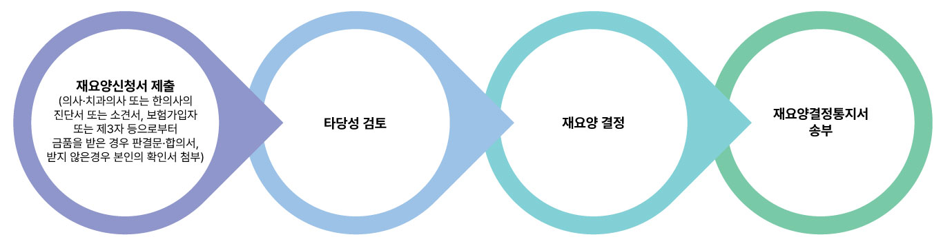 재요양 신청서가 접수되면 공단에서는 현재의 상병 상태와 재요양 요건 해당 여부를 심사한 후 본인 및 의료기관에 결정 통보
