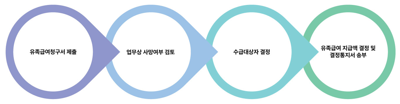 유족 보상 청구서가 접수되면 근로복지공단 해당 지사 보상부에서는 업무상 사망 여부를 검토하여 업무상으로 판정되면 유족 명의의 은행 계좌로 일시금 또는 매월 연금으로 지급합니다.