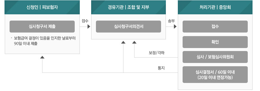 보험급여에 관한 결정에 불복이 있는 경우에는 결정이 있음을 안 날로부터 90일 이내에 회원조합을 거쳐 수협중앙회에 심사청구를 제기할 수 있습니다.